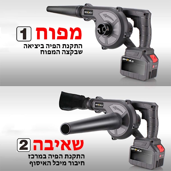 מפוח חזק לפינוי וניקוי + שואב עוצמתי + מיכל איסוף מתנפח