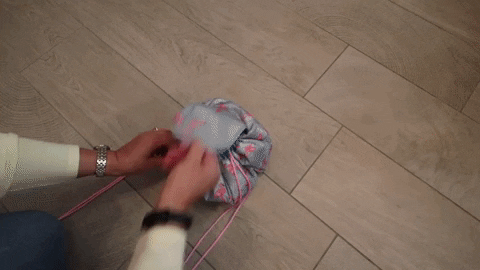 קיפול מהיר – חוסך זמן, פשוט לשים את כל המוצרים עליו – למשוך את השרוכים – בום! התיק סגור ברגע ואת מוכנה לצאת.