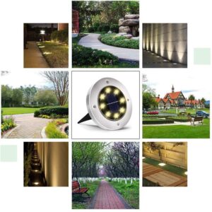 בכל דיסק קיימים כ12 או 20 נורות לד, בגוון לבן או אור יום לבחירתכם בעוצמה של 2W כל אחת, כך שבעזרתה תוכלו להאיר או לסמן איזורים שאתם אוהבים, ניתן להשתמש בתאורה הסולארית בכל מקום אשר בו ניתן לנעוץ את המנורה הסולארית , בתנאי שהיא חשופה לאור השמש ,כלומר גם בשימוש על הדשא, באדמה, להאיר שביל ואפילו בתכנון מוקדם תוכלו "לשתול" אותן בין אריחי הרצפה או הדק שלכם , לתאורת דקורטיבית או סימון הדרך או מפני מכשול.