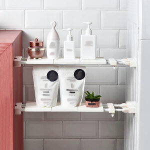 המנגנון הייחודי של המדף הטלסקופי מאפשר לו לעמוד בעזרת לחיצה בדפנות – אין צורך בדבק! אין צורך בקידוחים!